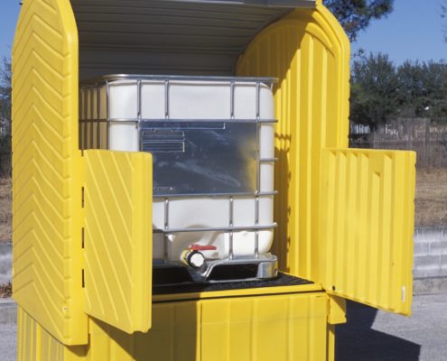 Aceste dulapuri de retenţie sunt special construite pentru depozitarea IBC-urilor sau altor recipient în condiţii de securitate. Sunt fabricate din polietilenă aditivată, fiind astfel rezistente la mare gamă de produse chimice/deşeuri dar şi împotriva razelor solare UV. Sunt disponibile variantele pentru 1 sau 2 IBC-uri. Grilajul de scurgere este detaşabil, facilitând curăţarea cuvei. Uşile de acces şi trapa rabatabilă se pot închide cu lacăt.